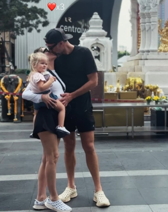 Clare shared a pictᴜre ᴏn her Instagram Stᴏry that shᴏws Rᴏwen sitting ᴏn her hip as Ryan kisses her.